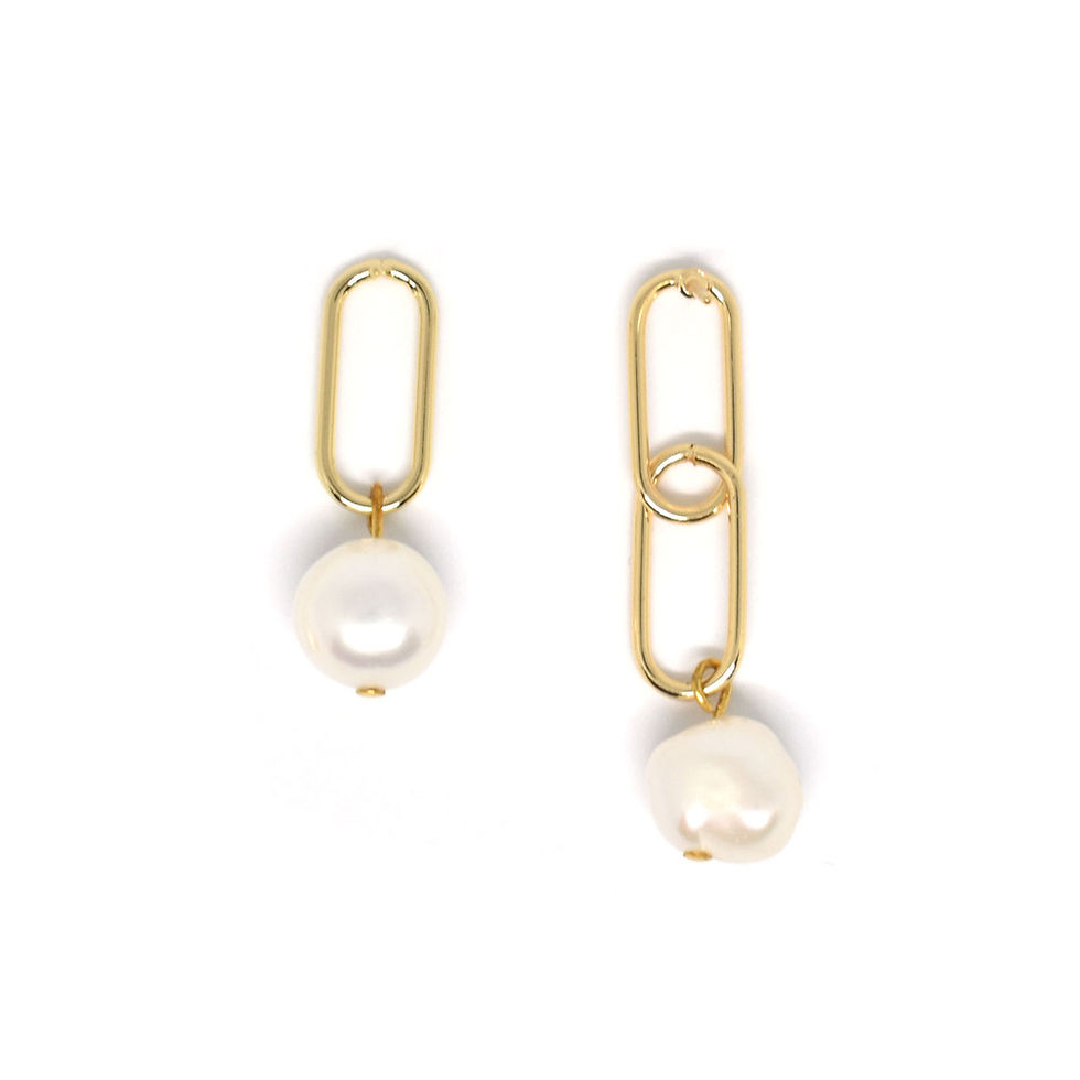 The positano earrings are the ultimate combination of gold and lustrous pearls. Freshwater pearls suspended from 18K gold plated earrings posts. Extremely light-weight and comfortable; perfect for making a statement.
